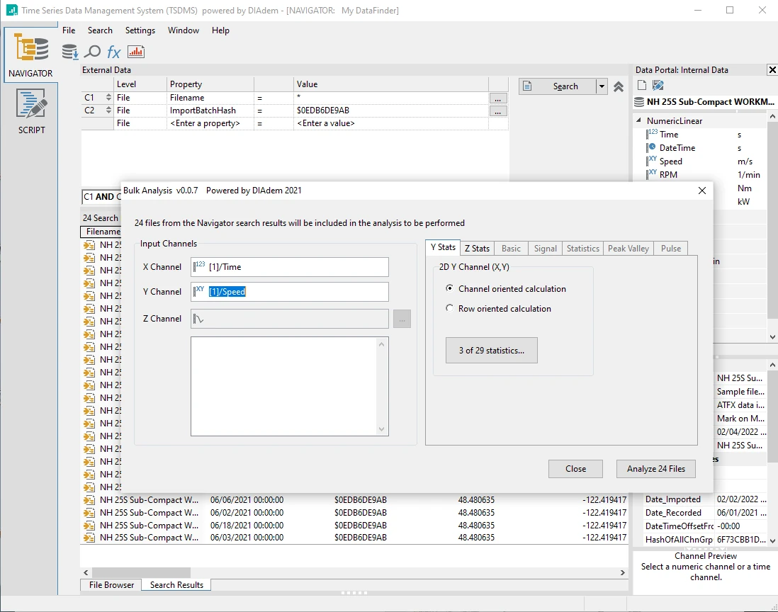 No application is faster and more versatile than DIAdem for ingesting and analyzing big data from sensors and data acquisition equipment. It's open standard TDMS file format provides superior read/write performance, and it stores metadata that provides valuable context, and is the enabler for data categorization.