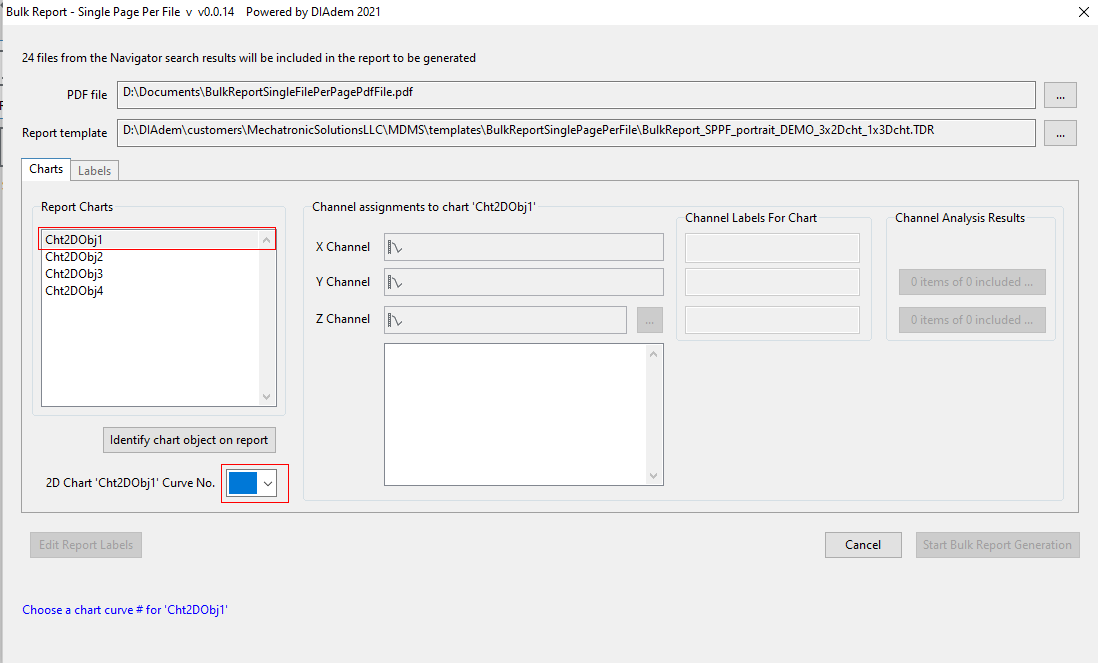 You should always begin creating a custom report layout from one of the original files that came with the installation, or file that you editied that came from the original installation files. Bulk Report expects and requires that certain chart and text objects exist on the report layout. Specifically, it expects to see these object names: RptTitle, RptSubTitle, Ch2Dobj1, CommentsLeft, CommentsRight, HeaderLeft, HeaderMiddle, HeaderRight, FooterLeft, FooterMiddle, and FooterRight.