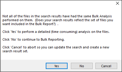 To start Bulk Analysis, first execute a search to define the set of files that you want to perform the Bulk Analysis on. Then click on the Navigator panel toolbar as shown in the image below.