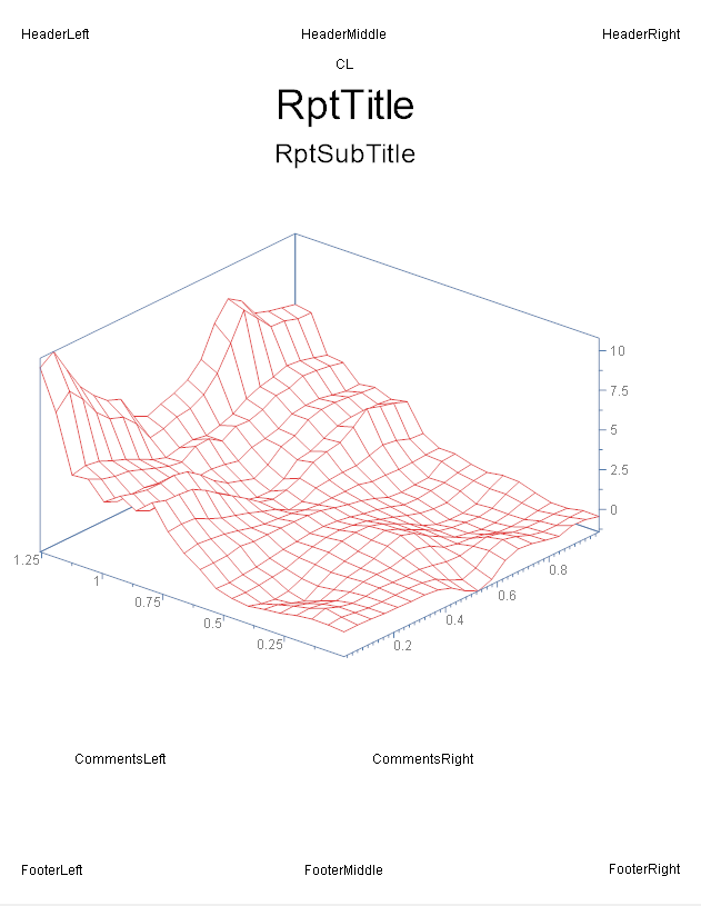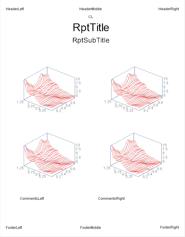 Do not delete any of the following report template objects named: Ch2DObj1, RptTitle, RptSubTitle, HeaderLeft, HeaderMiddle, HeaderRight FooterLeft, FooterMiddle, FooterRight, CommentsLeft or CommentsRight. You can however change the formatting (font color, size, etc.) of any report object, and you may add new report objects to the page. The primary objective in editing a report template is to change the formatting of a 2D or 3D chart.